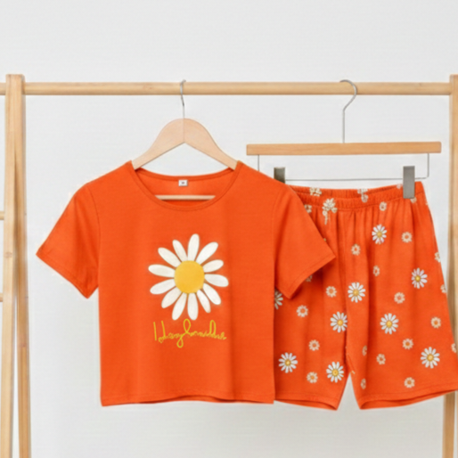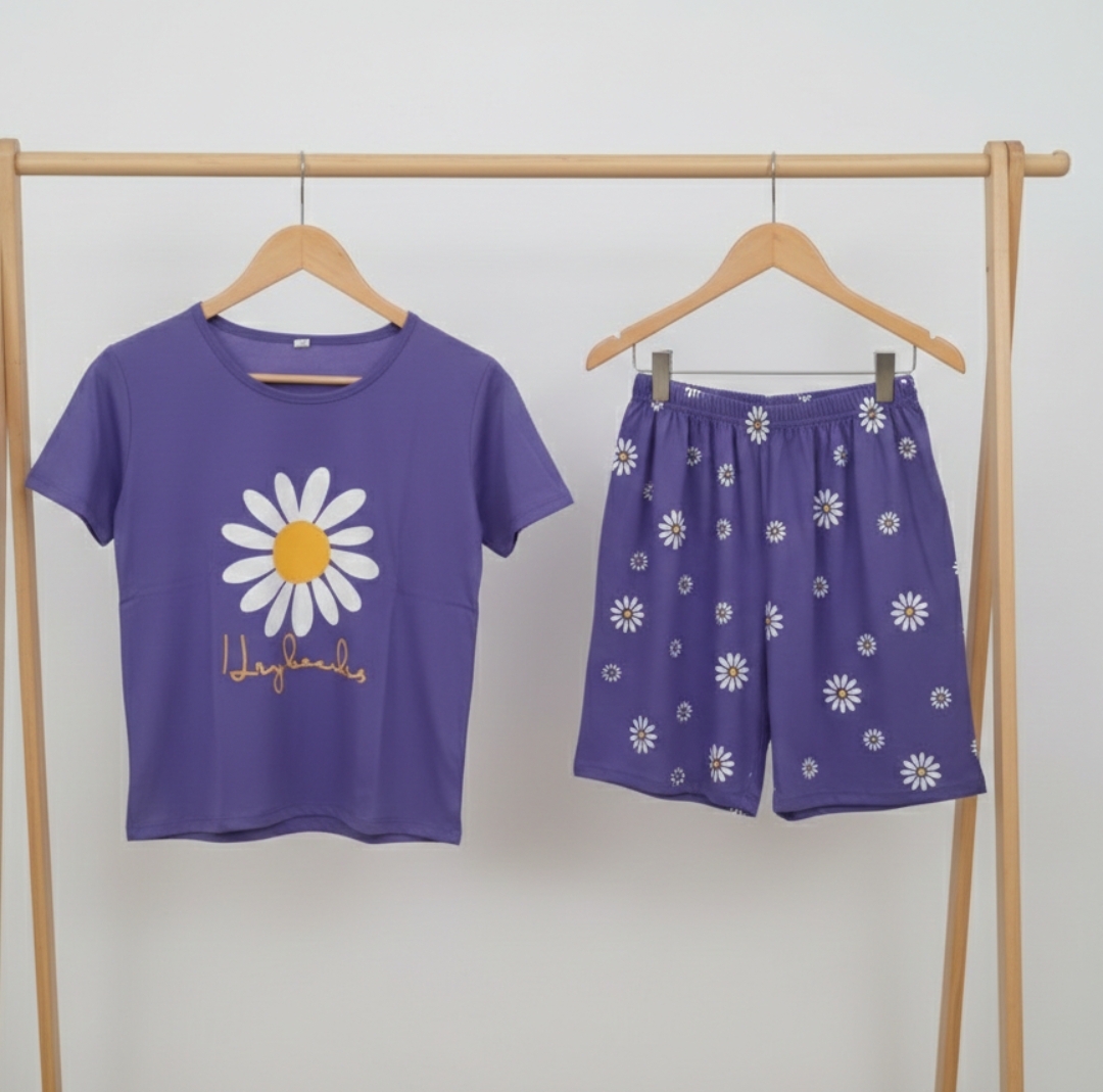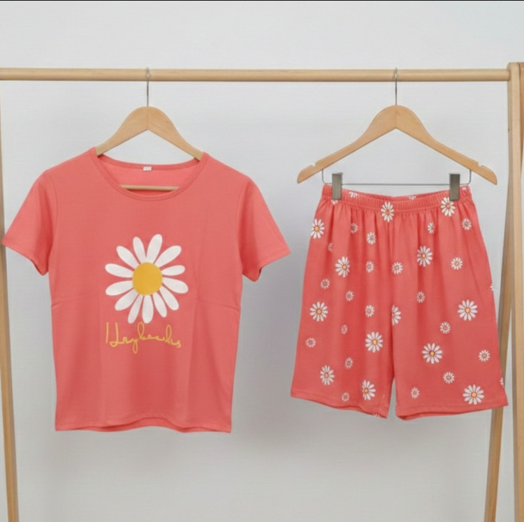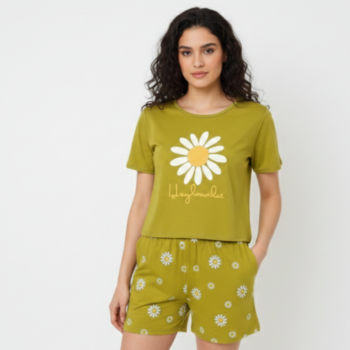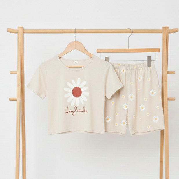 ست کراپ شورتک زنانه مدل بابونه